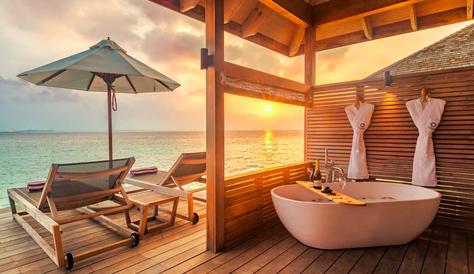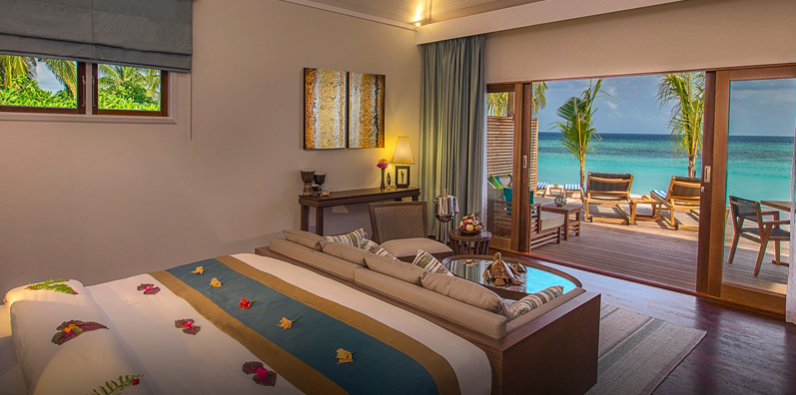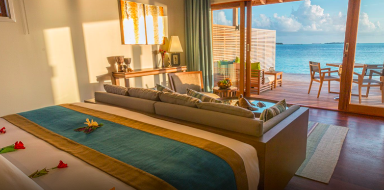 1. Ocean Villas ห้องกลางน้ำแบบเริ่มต้นที่ห้องกว้างขวาง ขนาด 105 ตารางเมตร ห่อง type นี้ไม่มีสระว่ายน้ำที่ระเบียง แต่สามารถนั่งเก้าอี้ชายหาดมองออกไปจากห้องพักจะเห็นทะลที่สวยงามของประเทศมัลดีฟส์ยิ่งมองยิ่งไม่อยากจะละสายตา หรือจะลงว่ายน้ำทะเลจากทางด้านหน้าของห้องก็สามารถทำได้ค่ะ