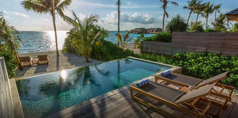 3. Beach Pool Villas หากท่านใดที่ชอบพักบนหาด HURAWALHI MALDIVES RESORT ก็จะมีห้องแบบนี้ให้บริการ ตัวห้องมีขนาด105 ตารางเมตรโดยจะมีสระว่ายน้ำขนาด 27 ตารางเมตร เอาไว้ให้ relax กันด้วยค่ะ เดินไปทะเลหรือชายหาดค่อนข้างจะใกล้และสะดวกมากค่ะ