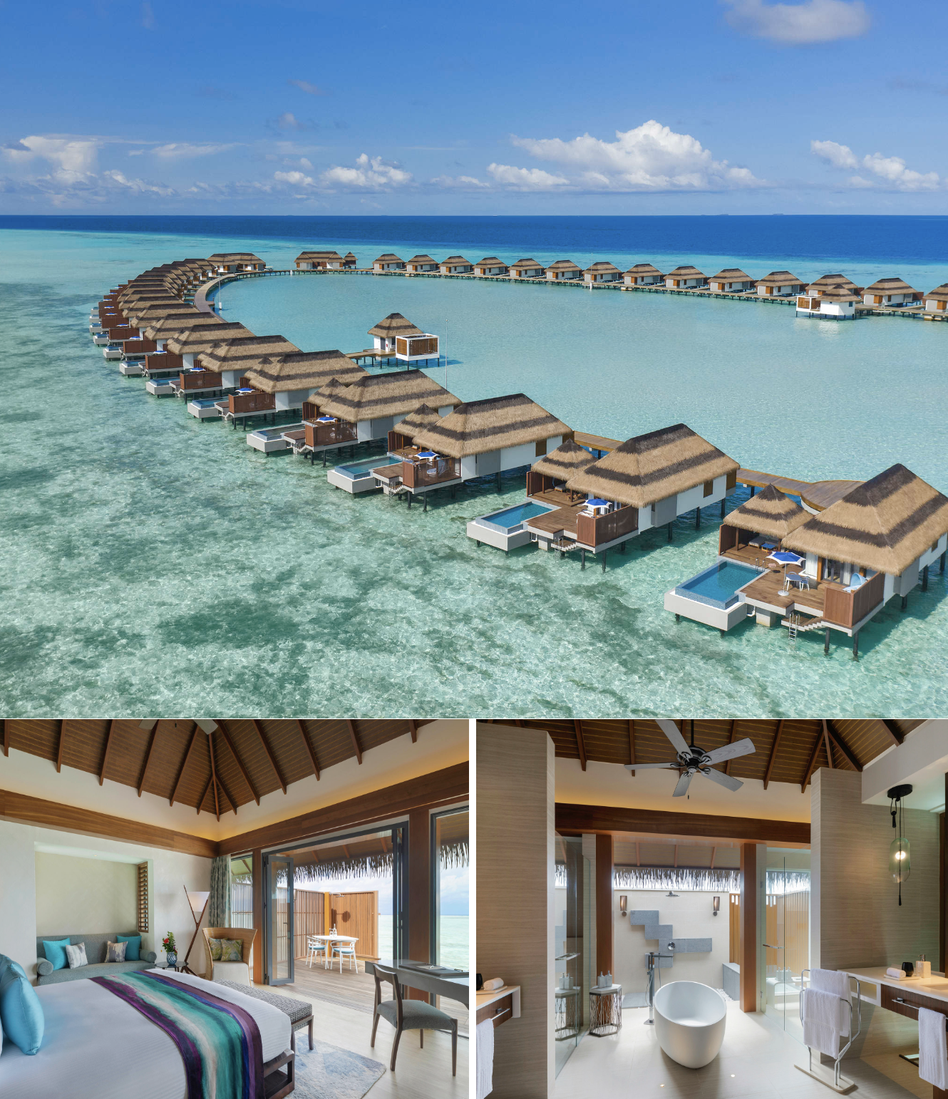 “รีสอร์ท 5 ดาวสุดหรูที่เปิดใหม่ในประเทศมัลดีฟส์ที่มีชื่อว่า PULLMAN MALDIVES MAAMUTAA ตั้งอยู่ทางใต้ของประเทศมัลดีฟส์ซึ่งมีธรรมชาติทางทะเลที่ยังสมบูรณ์ จุดเด่นที่ไม่เหมือนใครก็คือ ห้องพักกลางน้ำ AQUA VILLA ที่มีห้องนอนใต้น้ำเพียง 2 หลัง ที่ให้ความรู้สึกเหมือนนอนอยู่กับสัตว์น้ำน้อยใหญ่ในท้องทะเลที่สวยงาม หากได้เข้าพักสัก 1 ครั้ง คงนับเป็นประสบการณ์ที่หาไม่ได้จากที่ไหนในโลกนี้เลย”