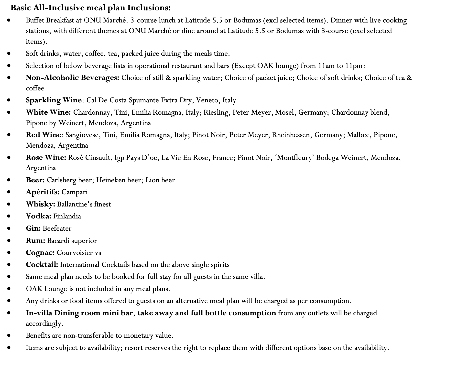 - มื้ออาหาร Basic All Inclusive plan (รายละเอียดด้านล่าง)/ Basic All Inclusive plan (detail is below)